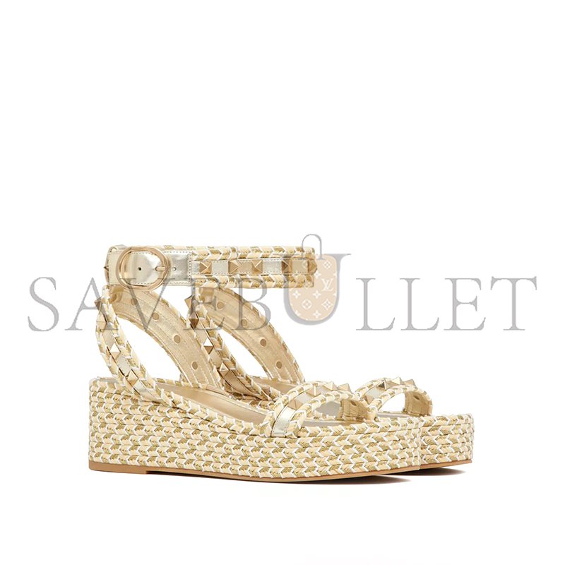 VALENTINO ROCKSTUD FLATFORM SANDALIN LAMINATED NAPPA LEATHER 45MM 4W2S0GI3DYM_YBS