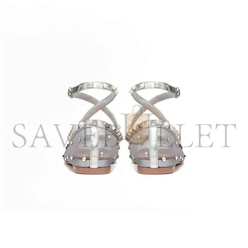Valentino Garavani Rockstud ballerina in mesh with crystal appliqu茅