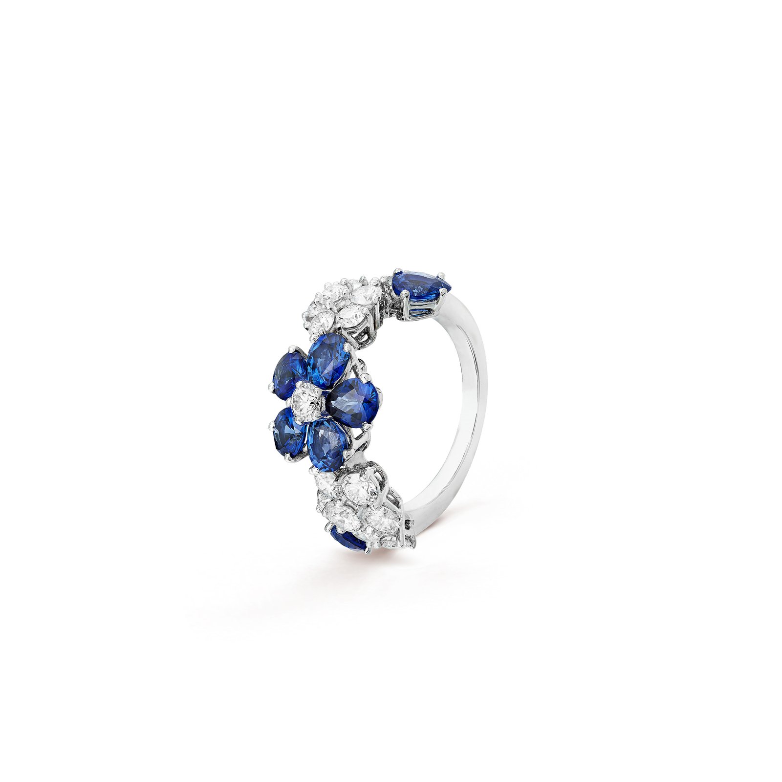 Folie des Pr茅s ring. Rhodium plated 18K white gold, sapphires, diamonds.