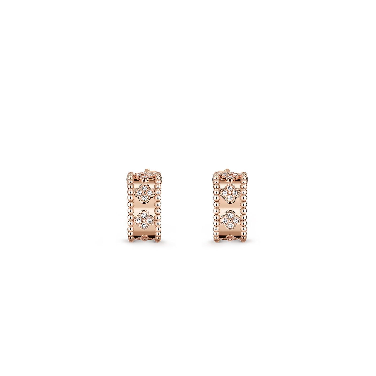 Perl茅e clovers hoop earrings, 18K rose gold, round diamonds; diamond quality DEF, IF to VVS.