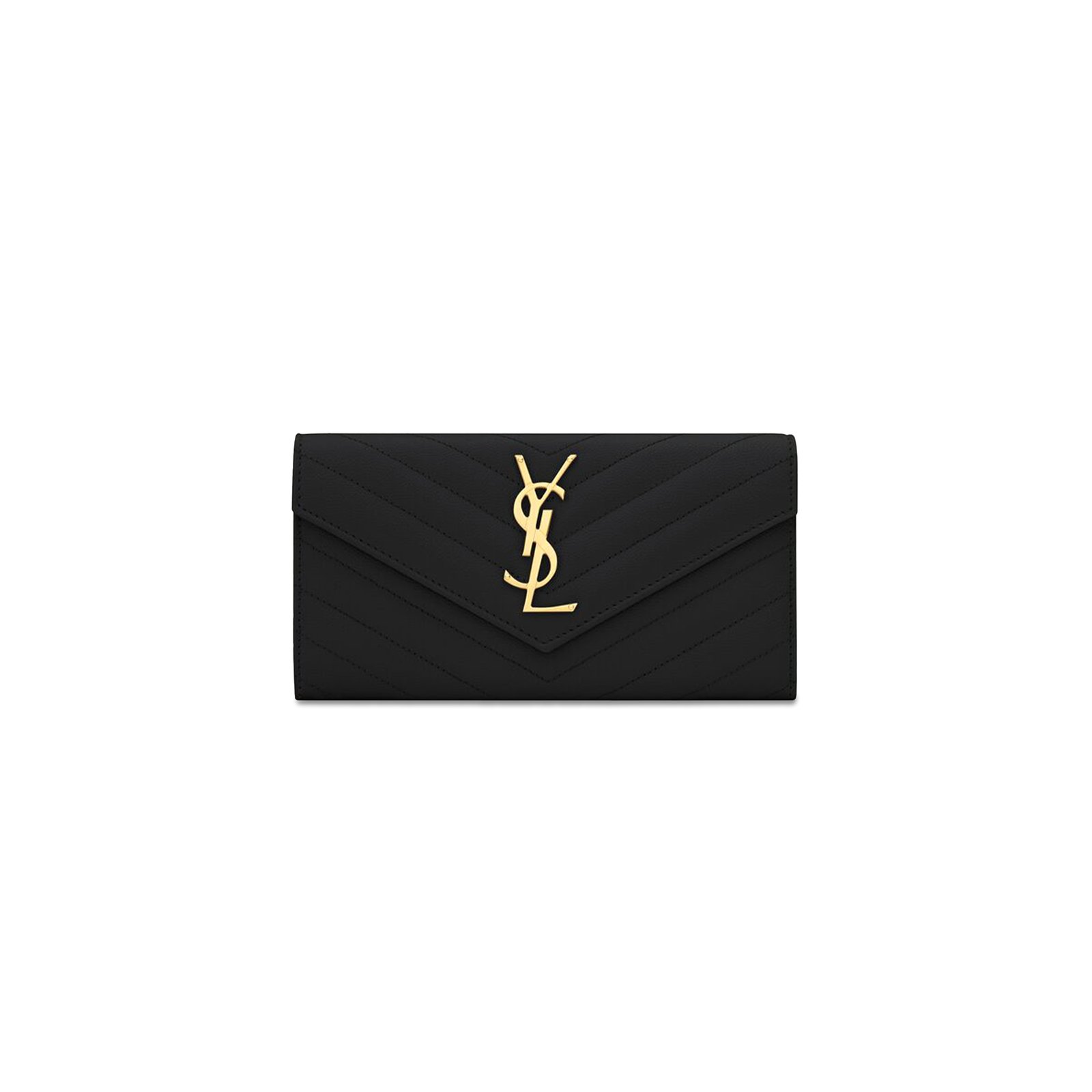 YSL CASSANDRE MATELASS� LARGE FLAP WALLET IN GRAIN DE POUDRE LEATHER�372264BOW011000 (19*11*3cm)