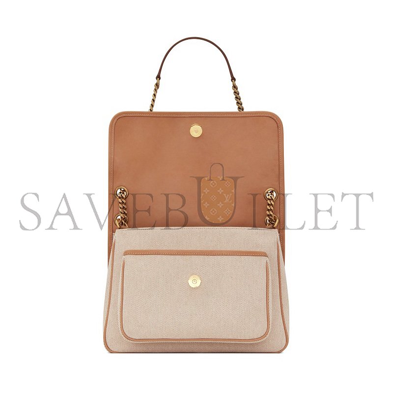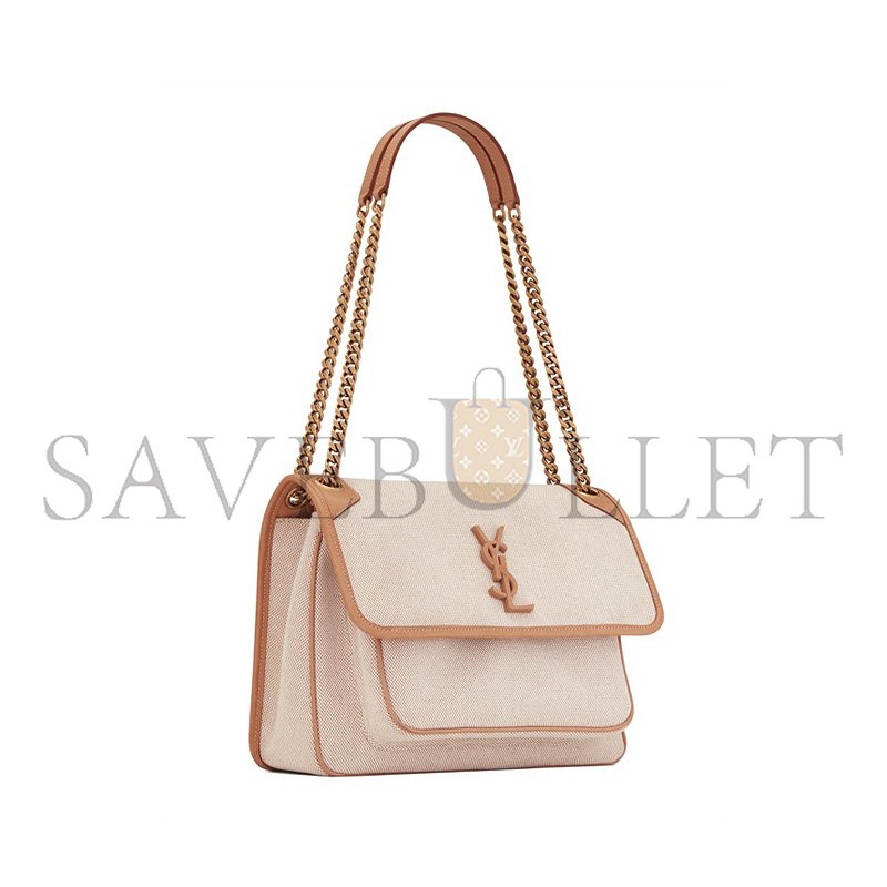 YSL NIKI MEDIUM CHAIN BAG IN CANVAS WITH SMOOTH LEATHER 498894633151 (28*20*8.5cm)