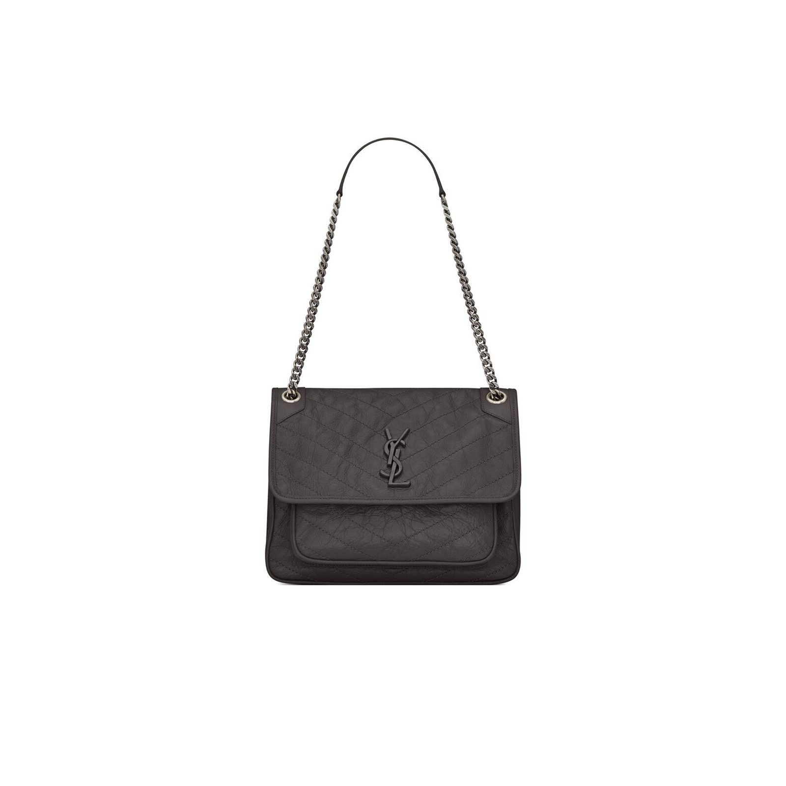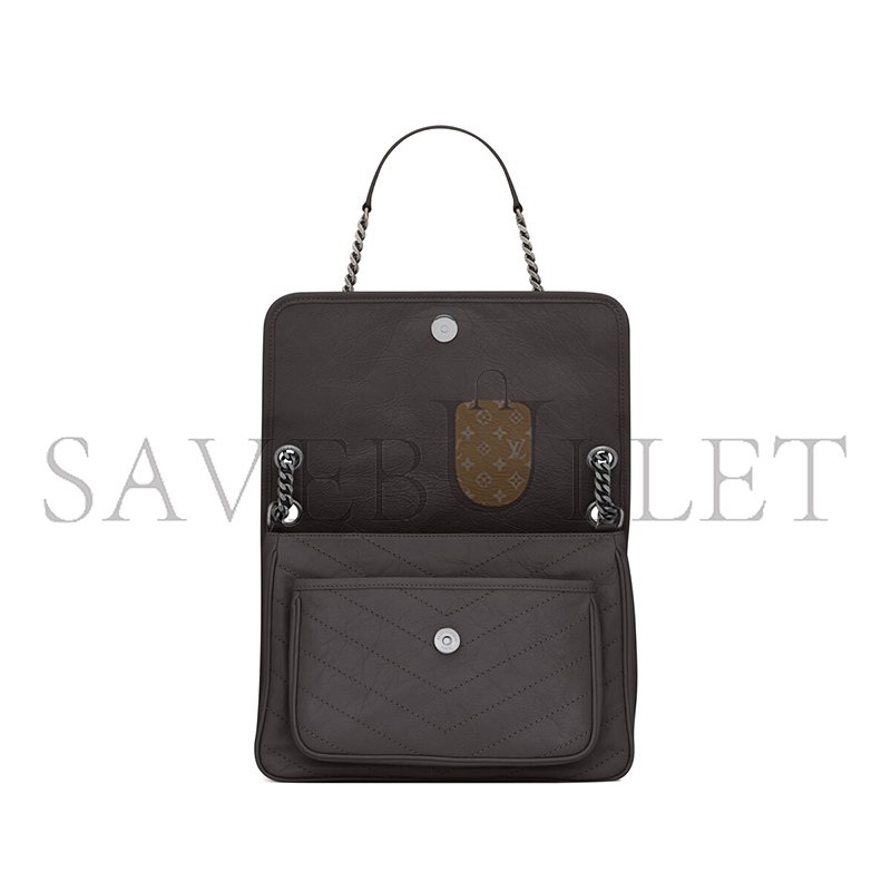 YSL NIKI MEDIUM CHAIN BAG IN CRINKLED VINTAGE VEGETABLE-TANNED LEATHER 633158685540 (28*20*8.5cm)