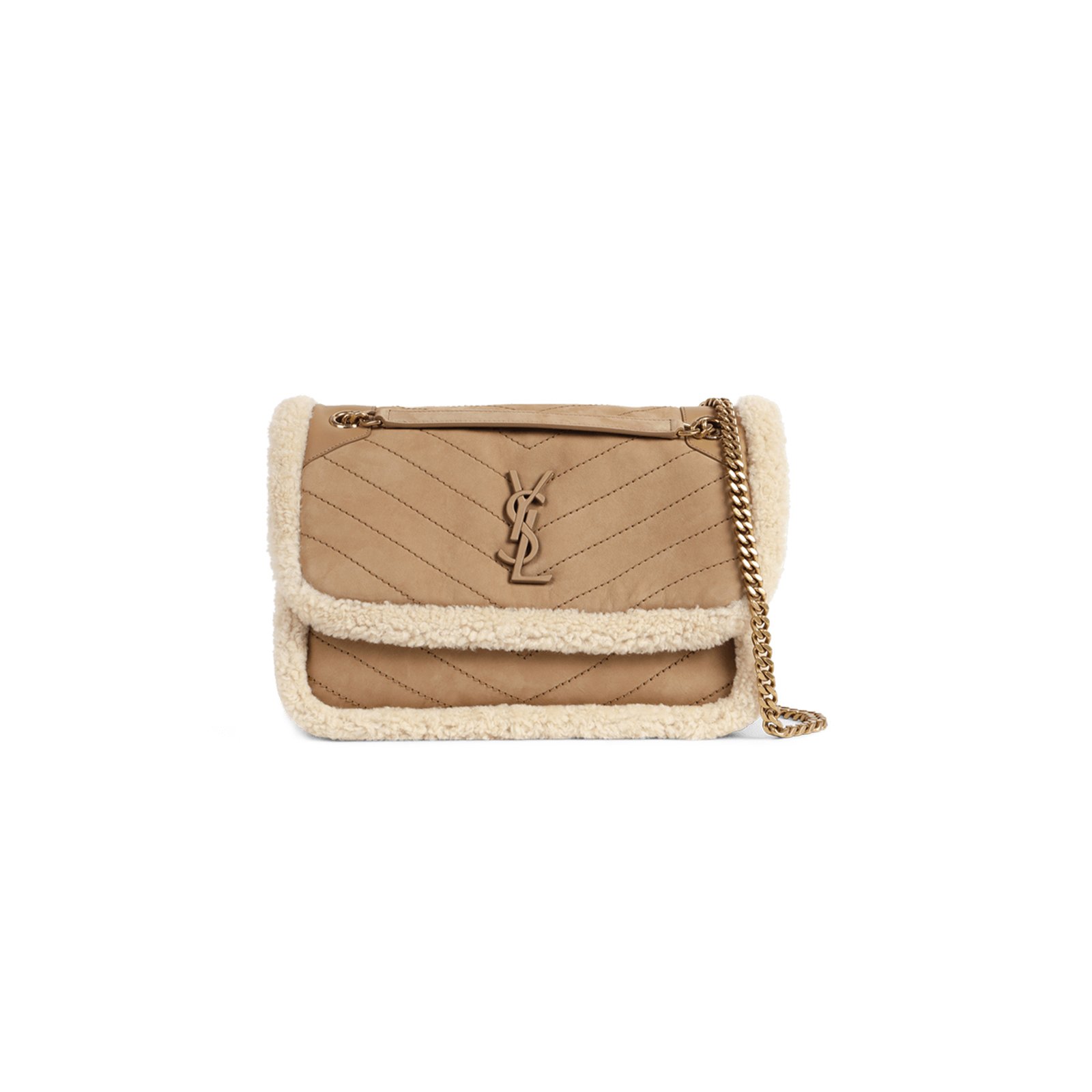 YSL NIKI MEDIUM IN SHEARLING-TRIMMED NUBUCK 633187BTO8W9276 (28*20*8.5cm)
