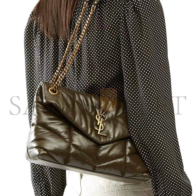 YSL PUFFER SMALL CHAIN BAG IN CRINKLED LEATHER 577476200452 (29*17*11cm)