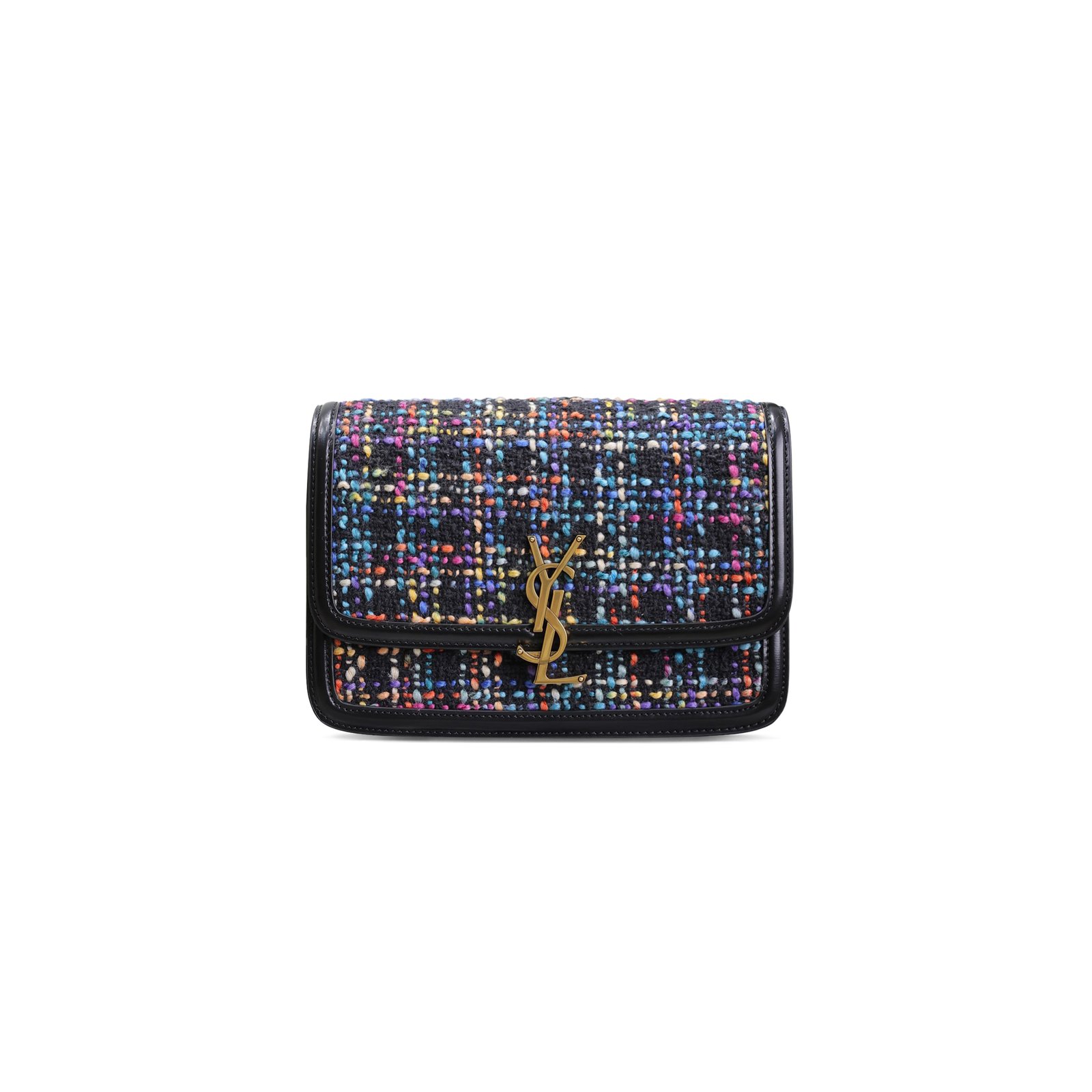 YSL SOLFERINO MEDIUM SATCHEL�WOVEN WOOL SHOULDER BAG IN NERO&MULTICOLOR 634305245521 (23*16*6cm)