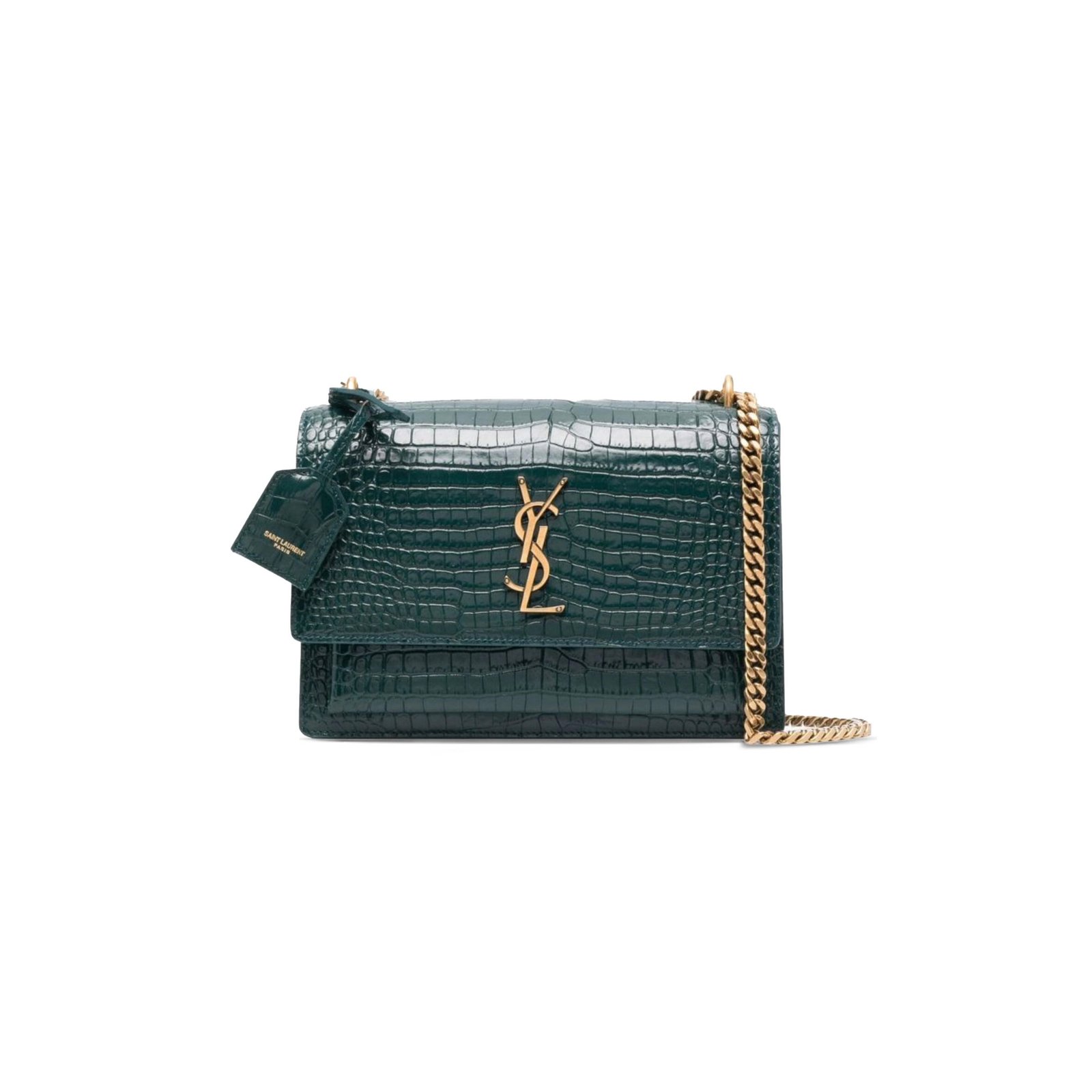 YSL SUNSET MEDIUM CHAIN BAG IN CROCODILE-EMBOSSED SHINY LEATHER 442906332108 (22*16*6.5cm)