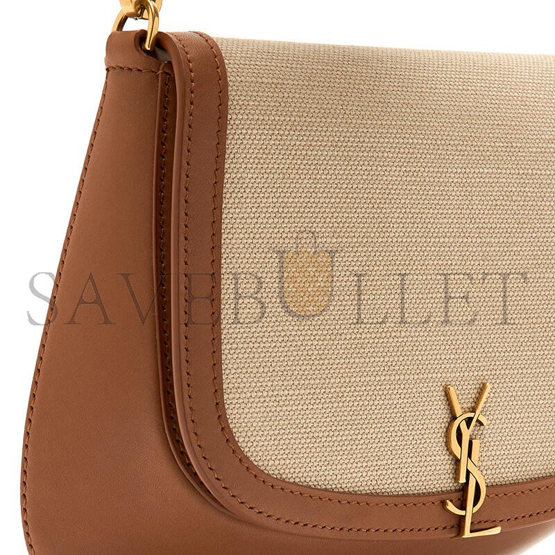 YSL VOLTAIRE TOP HANDLE IN CANVAS AND LEATHER 818896FACW69856 (17.5*21*8cm)