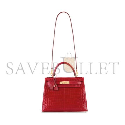 $1,159.00HERM�S MASTER SHINY CHINESE RED ALLIGATOR KELLY 28 WITH GOLD HARDWARE (28*22*10cm)