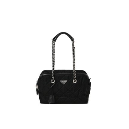 PRADA NYLON TESSUTO IMPUNTU QUILTED SHOULDER BAG BLACK (30*21*11cm)