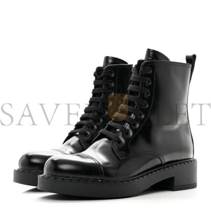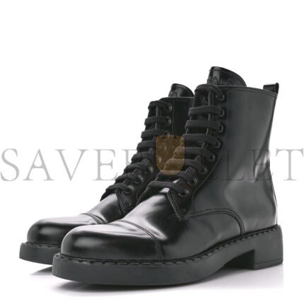 PRADA SPAZZOLATO CHOCOLATE 50MM COMBAT BOOTS 36 BLACK