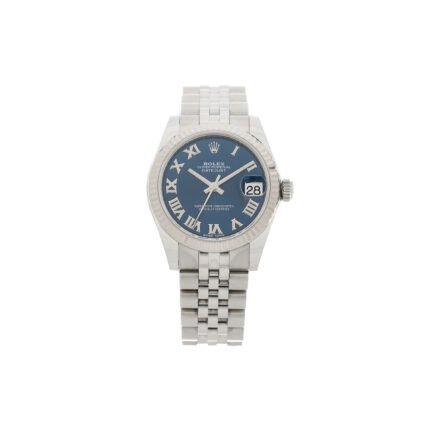 ROLEX STAINLESS STEEL 18K WHITE GOLD 31MM OYSTER PERPETUAL DATEJUST WATCH BLUE ROMAN 178274